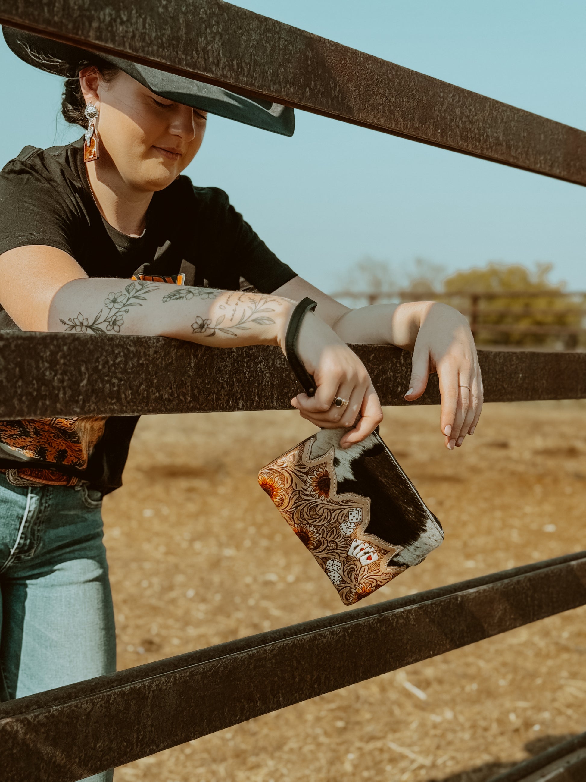 Just like the Bonnie she’s named after, this bag comes in a range of patterns, each one unique, expressive, and full of personality. From cowhide fronts paired with hand-tooled floral detail to smooth leather backs stamped with the K Country brand, every Bonnie bag is a blend of beauty and grit.