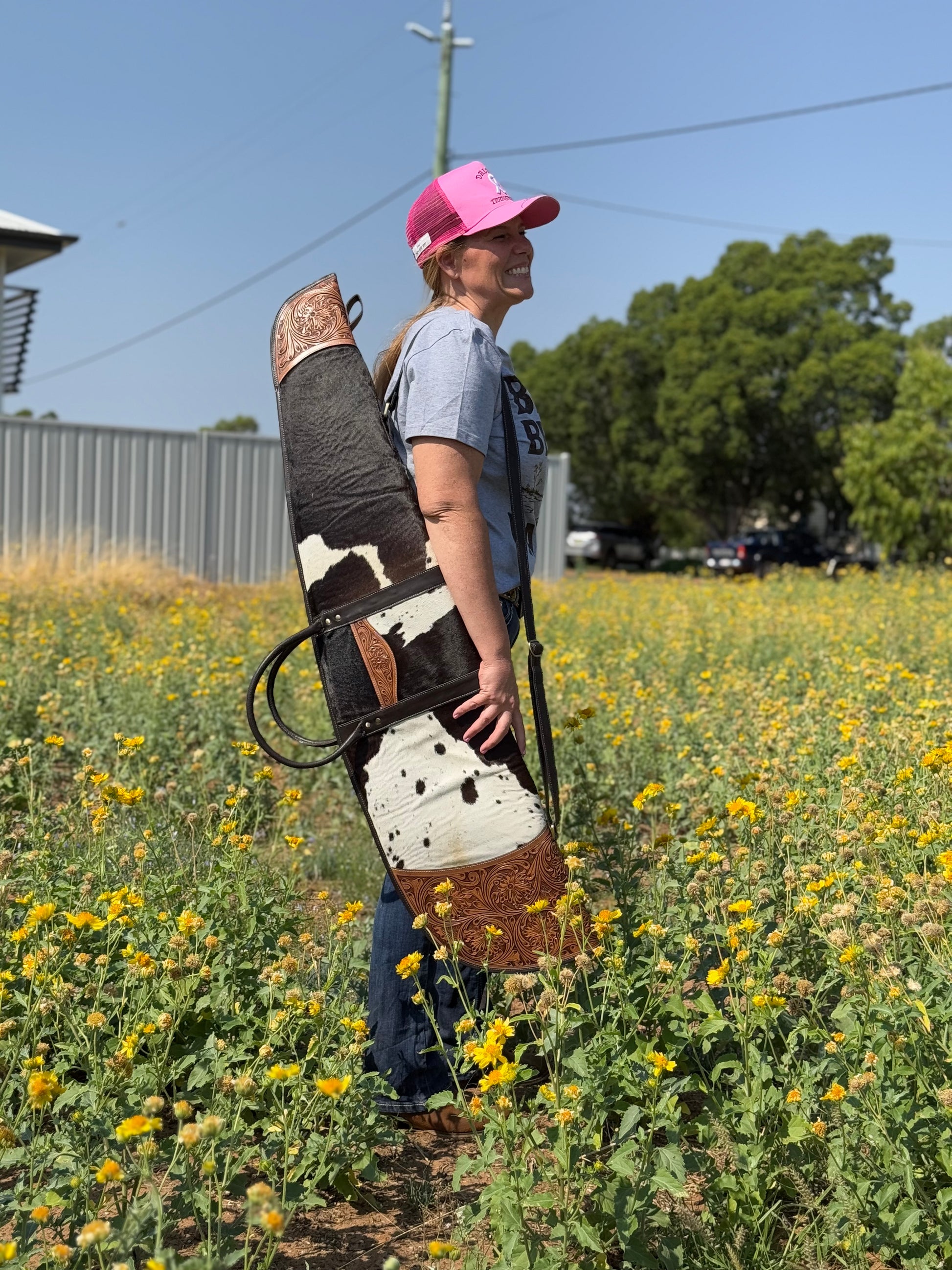 Built tough and made to last. This Tooled Leather Rifle Case is tough, practical, and ready for work, just like you. Handcrafted from premium cowhide with solid hand-tooling on the edges, this case is designed to handle hard days and rough country while keeping your rifle and scope protected.