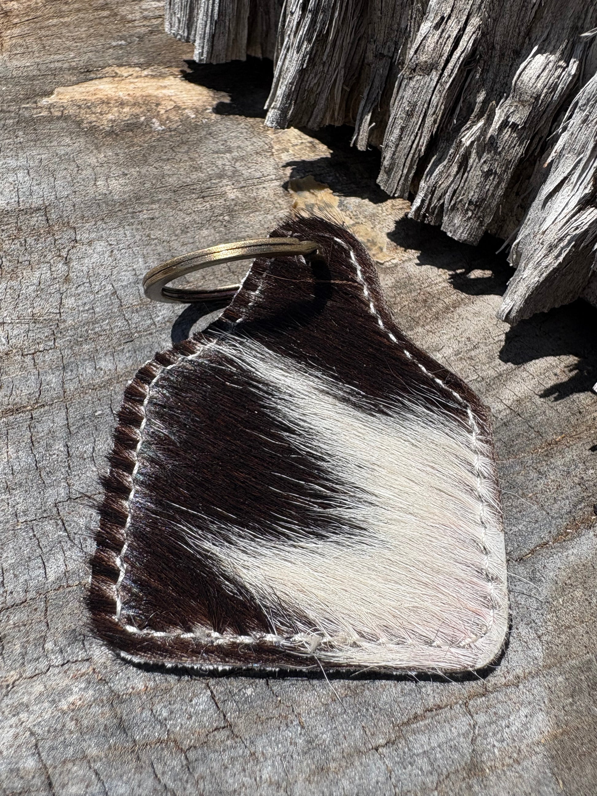 Add a touch of country style to your keys with this handcrafted cowhide and leather keychains.